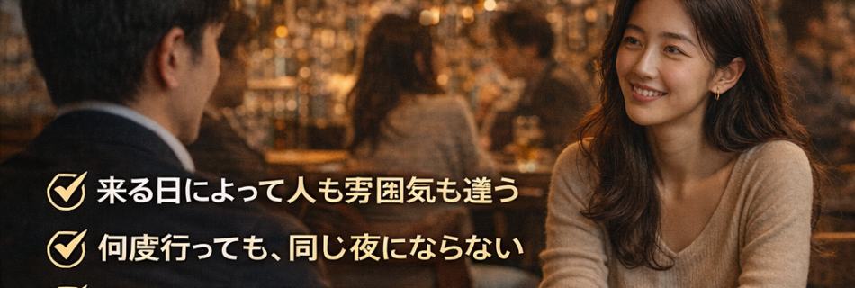 ハプニングバーに対して、「行けばだいたい同じ感じなんじゃないか」そう思っている人もいるかもしれません。 実際、世の中には・客層が固定されている・流れが決まっている・雰囲気が毎回ほぼ同じ そんなお店も少なくありません。 で …
