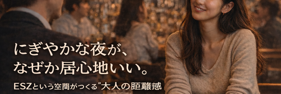 ― ESZという空間がつくる“不思議な安心感” ― にぎやかな場所が、いつも居心地いいとは限りません。 人が多くて、声があって、動きが激しいと、疲れてしまう夜もあります。 それでもESZでは、「にぎやかなのに、なぜか居心 …