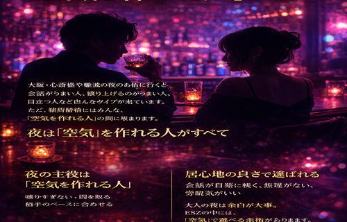 ― 余裕がある人ほど、夜がうまくいく ― 夜の世界では、“攻める勇気”が語られがちです。 ですが、本当に差が出るのは引き際の美しさかもしれません。 大阪・心斎橋のハプニングバーESZは、にぎやかで熱量のある空間です。だか …