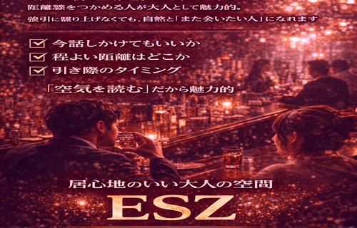 最初の一言は、いつだって少しだけ重たいものです。 「今でいいのか」「迷惑じゃないか」「変に思われないか」 頭の中で考え始めると、その一歩はどんどん遠くなります。 ですが、ESZの夜ではその一歩が思っているより軽くなること …
